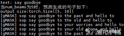 例如,当num_beams等于5,num_return_sequences也等于5时,生成5个不同的结果。