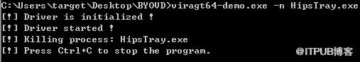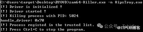 找到同一个公司开发的具有相同功能的驱动zem64.sys,只是创建的设备名为ZemanaAntiMalware,IOCTL和校验方式一致,利用上述方法进行测试,终止指定进程成功。