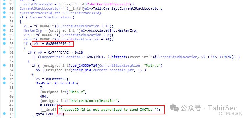 向上回溯,这个驱动程序对传入IOCTL的用户程序进行了校验,如果IOCTL不为0x80002010时,检测是否是已认证的进程,若不是则退出调用过程。