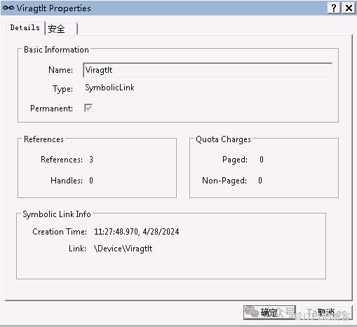 sc.exe create viragt64.sys binPath= C:\windows\temp\viragt64.sys type= kernel && sc.exe start viragt64.sys然后,检索设备Viragtlt上的句柄: