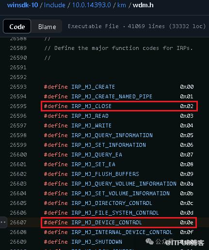 调用NtCreateFile(),NtClose()或者与NtDeviceIoControlFile()等函数与驱动程序交互时,执行的操作相关的值存储IRP构建的MajorFunction结构体成员里。