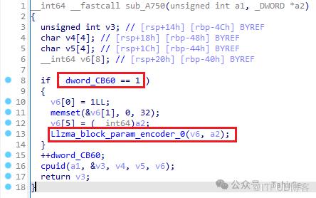 crc64_resolve()调用时,dword_CB60为1,后门程序会执行Llzma_block_param_encoder_0()函数。