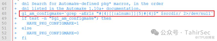 恶意的build-to-host.m4编译宏文件中,包含grep命令通过正则#{4}[[:alnum:]]{5}#{4}$匹配包含特定字符串(####Hello####)的文件名,即下阶段载荷的bad-3-corrupt_lzma2.xz文件。