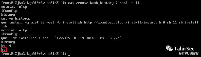 查看.bash_history找到第11条命令。