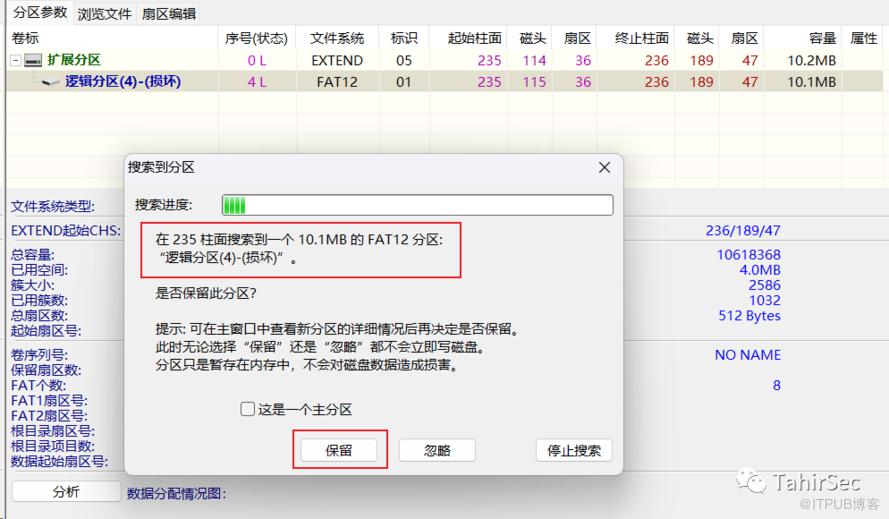 使用DiskGenius搜索分区,发现一个逻辑分区。