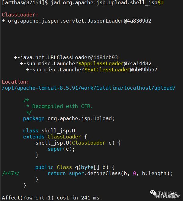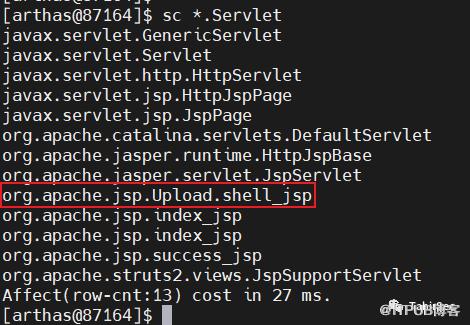 发现一个可疑的Servlet,org.apache.jsp.Upload.shell_jsp,这个是我们上传的webshell
