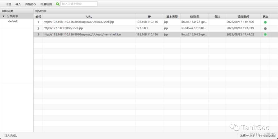 中间件内存马注入&冰蝎连接(附更改部分代码)https://mp.weixin.qq.com/s?__biz=MzU5NDgxODU1MQ==&mid=2247491241&idx=1&sn=3dc54d10191661620437cb8409ab1755&scene=21#wechat_redirect