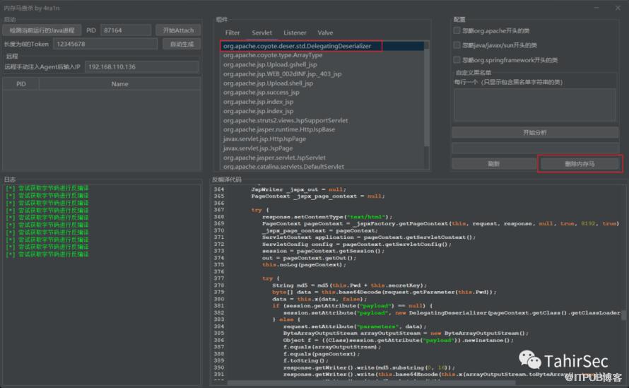 将java-memshell-scanner.jsp上传到tomcat应用目录下,访问此jsp,会自动查找可疑内存马,可dump class文件下来分析,也可直接kill掉该类。