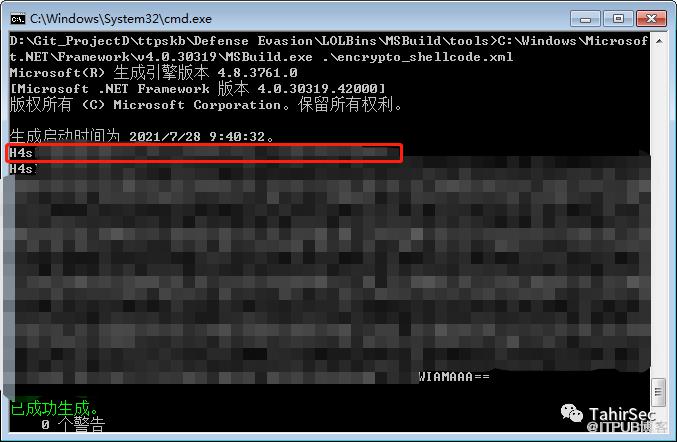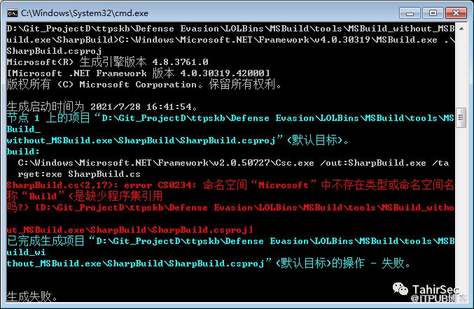 编译好的SharpBuild.exe编译后没有了数字签名,本身白利用就是因为要利用受信的二进制文件去执行恶意操作,实际上这种MSBuild without MSBuild.exe又放弃了这个特性。