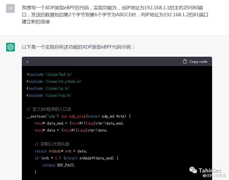 eBPF代码信手拈来,完全可以根据自己描述实现特定功能的eBPF程序。