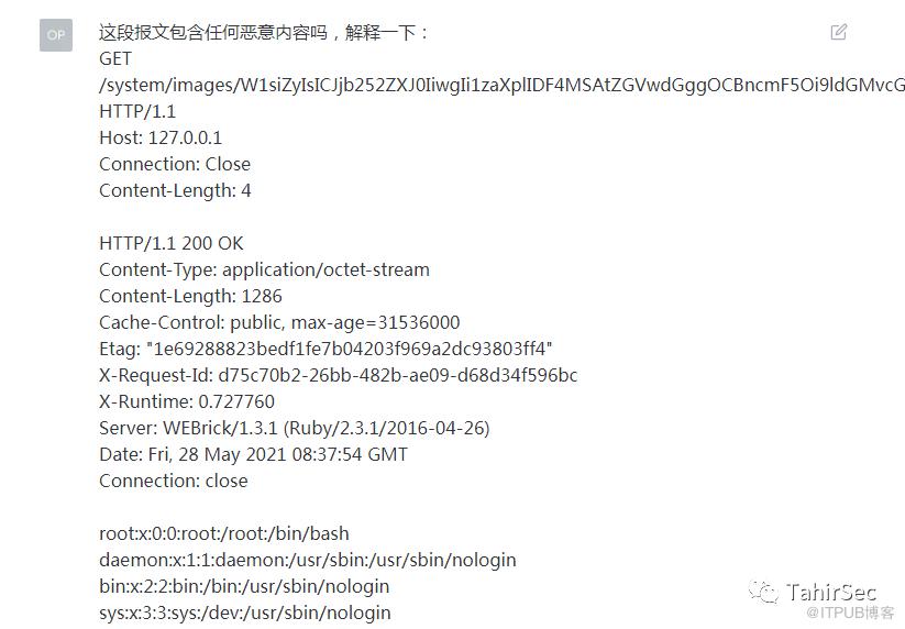 ChatGPT分析HTTP报文,检测到ExifTool远程代码执行漏洞的paylaod。