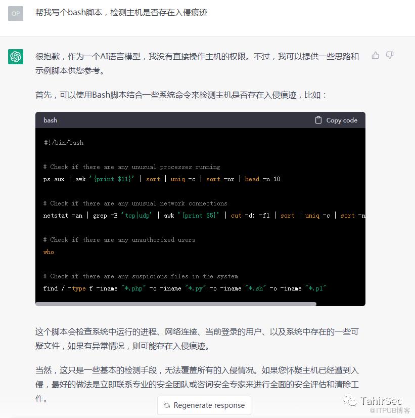 生成的脚本有点简单,当然我没有问具体的场景,ChatGPT回答就显得比较笼统。