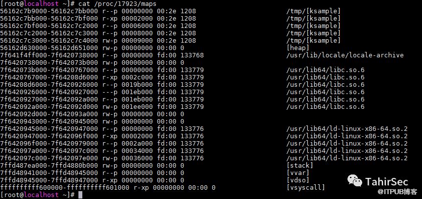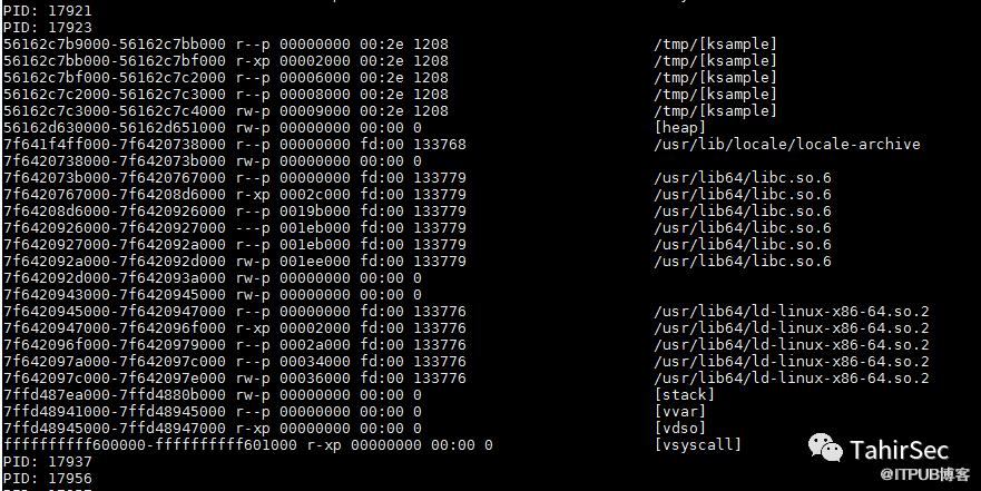 伪装为内核线程的 [ksample],则打印出内存中的映射信息。