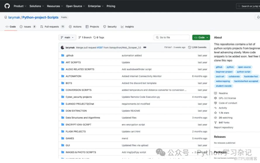 "Python-project-Scripts" 是 GitHub 上一个备受推崇的开源项目,由 Lary Mak 负责开发和维护。该项目提供了丰富的脚本资源,从入门到高级,旨在助力 Python 新手逐步提高编程水平。