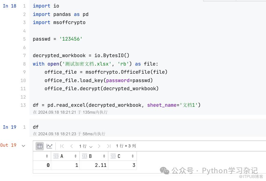 最近接触到的一个项目要需要读入带密码的excel文件,在网上找了很多方法,有一些方法是错误的,还有些方法比较繁琐。我在本文使用pandas来读取带密码的excel文件。pandas读取带密码的Excel文件,需要借助其他的库,因为pandas本身不支持读取加密的Excel文件。