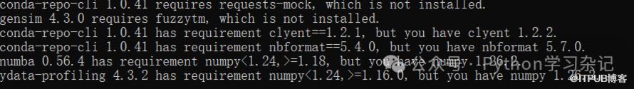 可以发现我很多包之间有冲突,因为我是在一个大的基础环境运行代码,不同包之间是有冲突的,只能临时运行代码的时候更新包的版本。