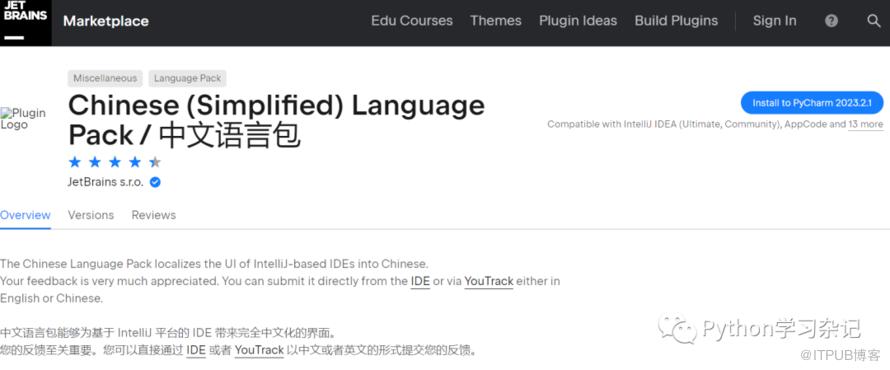 中文语言包,安装该插件以后,pycharm界面选项将支持中文。