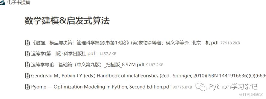 本部分分享了运筹学、启发式算法方面的书籍,感兴趣的朋友可以自行下载查阅。