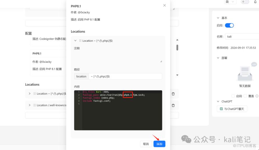 因为我的是php是8.2 将模板中的8.1修改为8.2。最后点击添加。