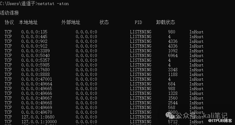 利用此命令,我们可以排查系统中的异常连接。