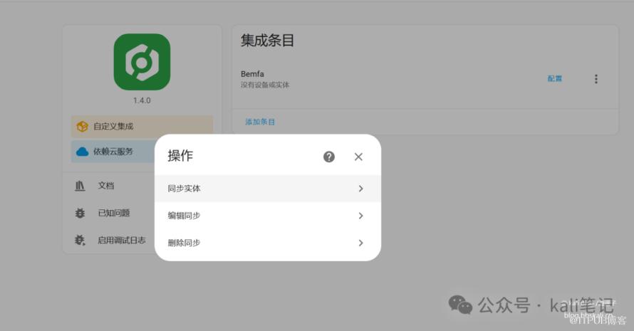 如果没有蓝牙网关,小爱是无法读取温湿计的数值的。我们可以通过巴法云将数据同步过来。搜索Bemfa安装巴法云,点击同步。