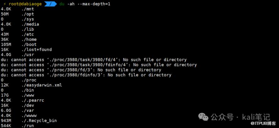 我们先进入服务器根路径然后输入以下命令,查找根路径下面,每个文件的占用情况。