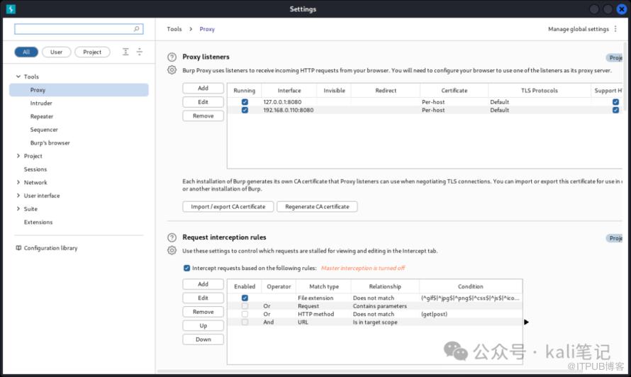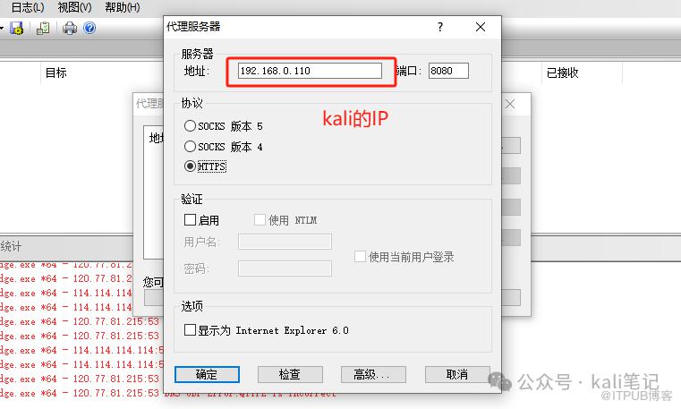 添加代理IP为kali的IP。如果本地环境有burp,直接填写本地的127.0.0.1.