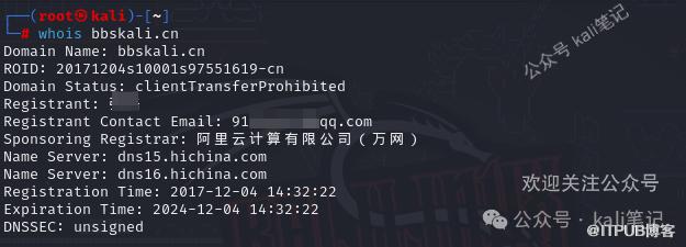Whois查询是最基本的信息收集手段。可用于收集网络注册信息,注册的域名、IP地 址等信息、域名所有人、域名注册商。