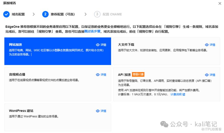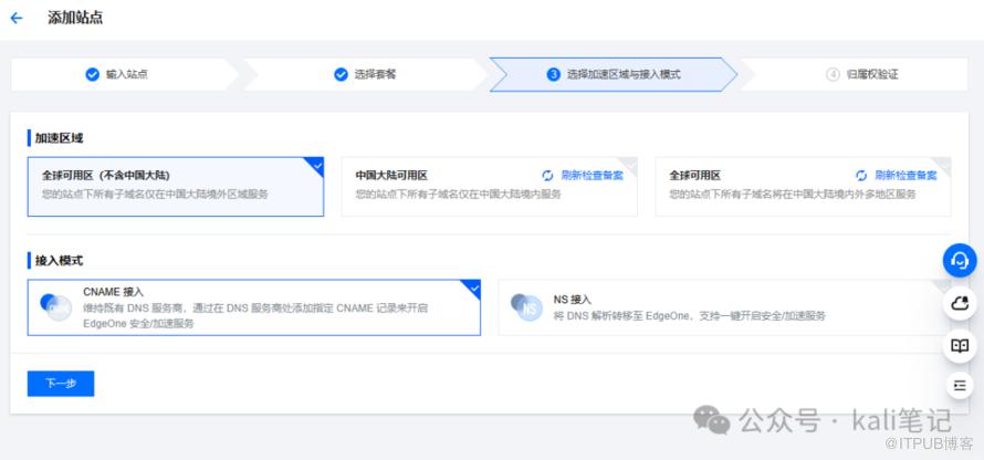 接下来,根据个人的实际情况选择套餐。如果是个人站点,一月9.9足够了。根据实际情况选择加速区域。