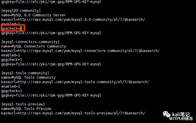 找到[mysql80-community] 并修改gpgcheck 改为 0 ,即不校验gpg