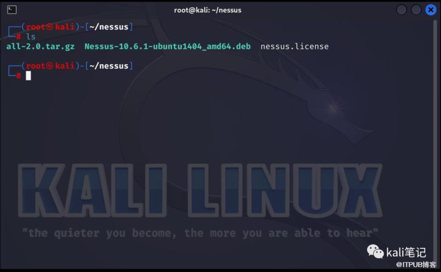 下载完成后,复制到kali中去。并执行下面命令进行安装。为了方便,我们在root目录下新建了一个Nessus文件夹。
