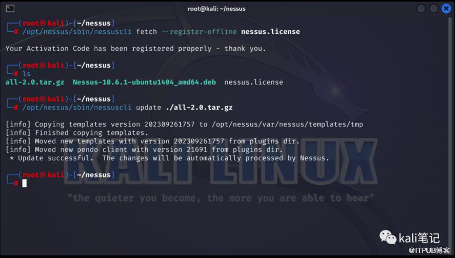 /opt/nessus/sbin/nessuscli update ./all-2.0.tar.gz