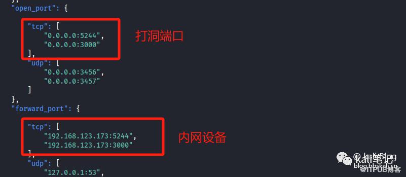 在上述方法中,我们仅仅打通了5244端口。如果有多个端口和多台设备怎么办呢?或者路由器没有端口转发功能怎么办?我们需要新建一个json文件。内容如下