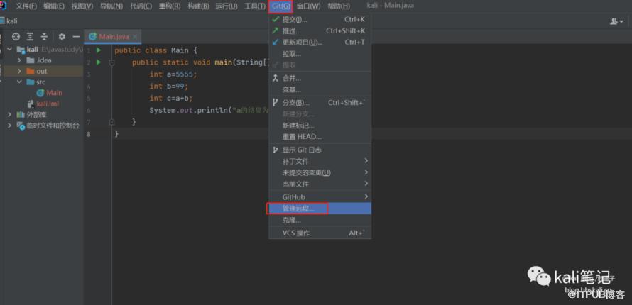 点击确定后,等待下载安装git。安装完成后,会出现git的菜单栏,点击管理远程地址。
