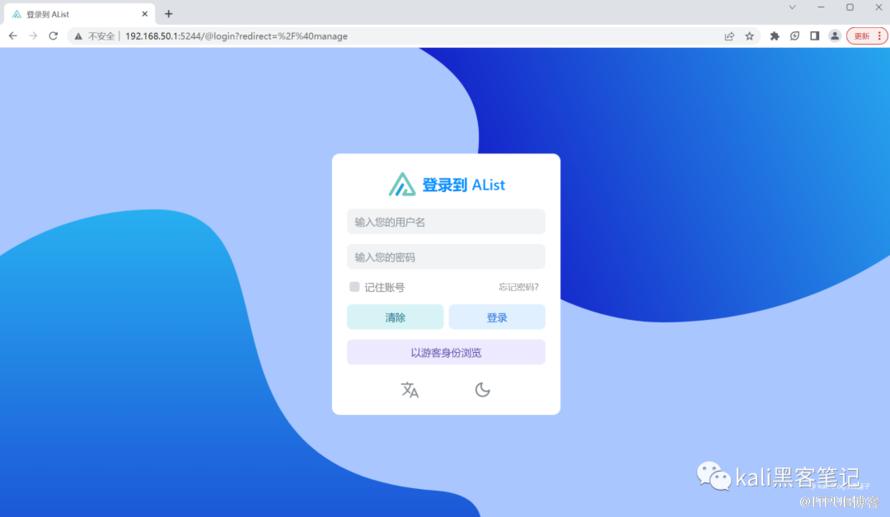 然后访问http://192.168.50.1:5244便可以访问alist的登录页面。