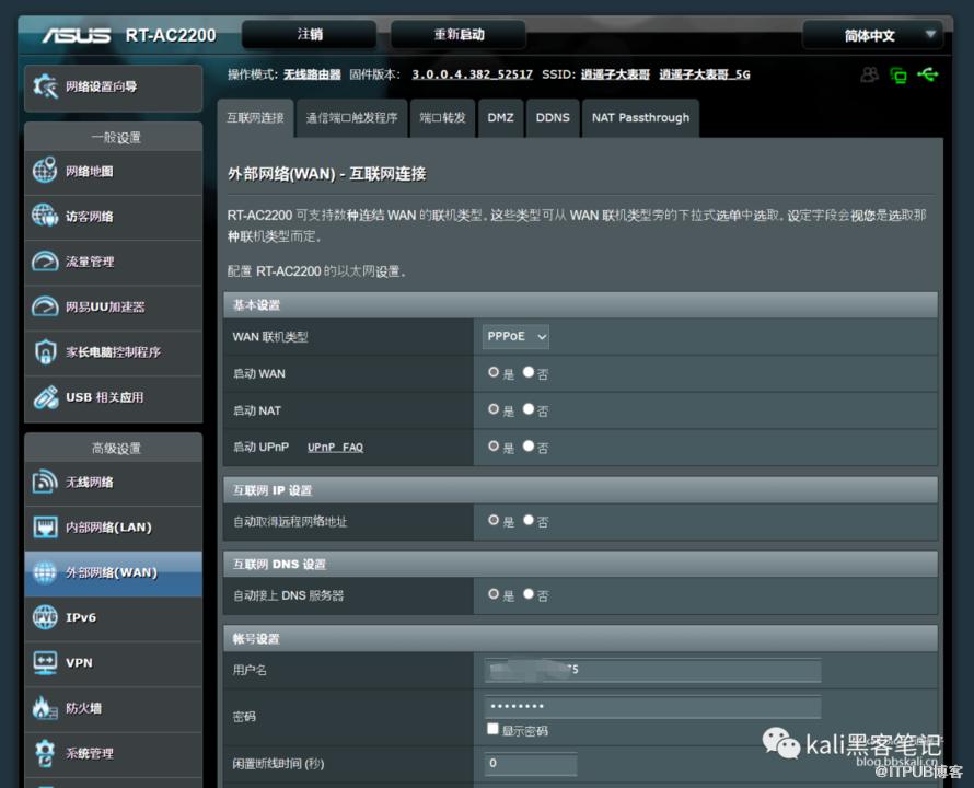 然后,登录路由器,设置上网方式为pppoe。配置上网账号并保证能正常上网。