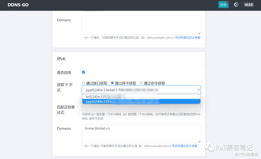 我们通过登录路由器,通过执行ifconfig命令查看路由器自身的ipv6地址。或者直接用ddns就行了。网卡我们选择ppp0