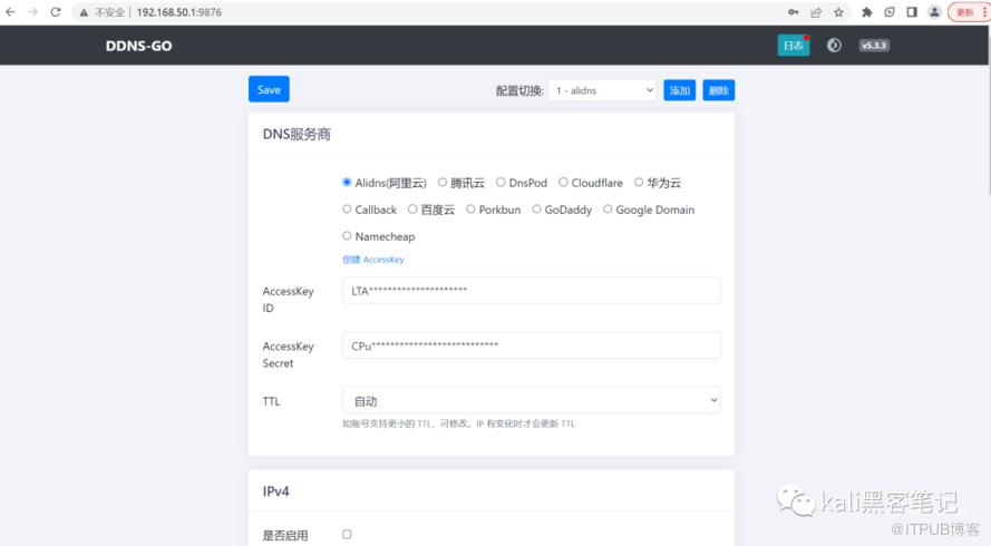 接下来,我们需要配置阿里云域名解析的参数,这里就不多说了。