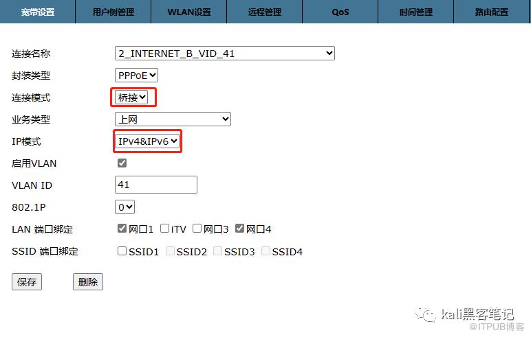 首先利用超级管理员密码登录光猫,设置网络模式为桥接模式