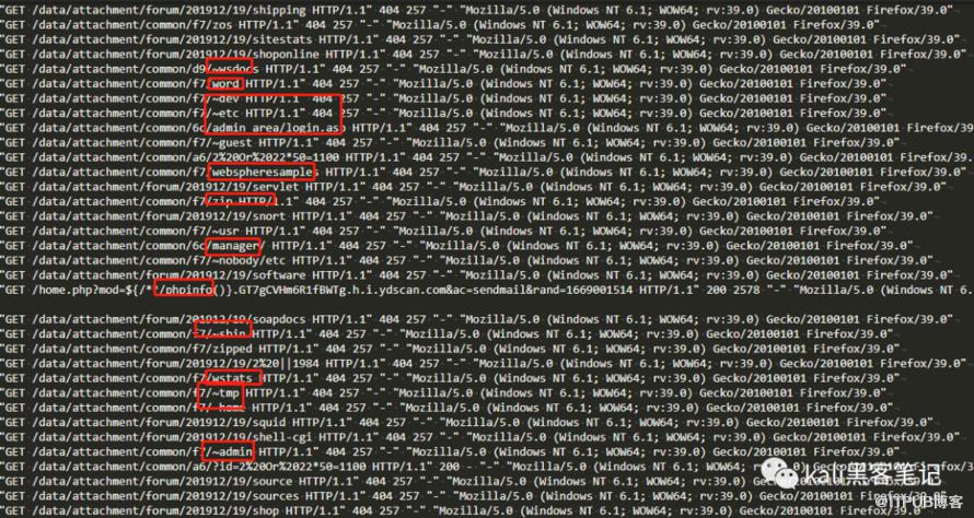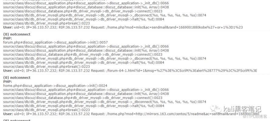 很明显,这个对我们的网站进行了目录扫描。而攻击者IP就是我们在上一步屏蔽的IP。当然,除了查看web日志外,也可以在程序日志中查看。如我们的dz论坛。