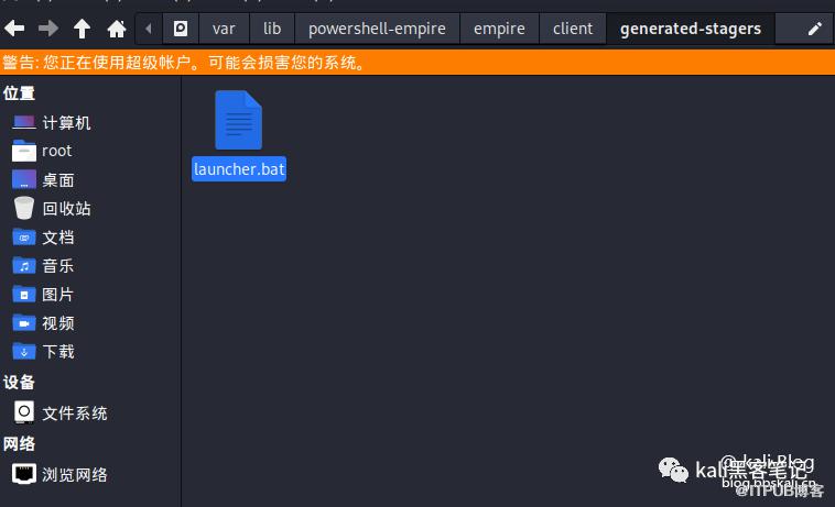 执行完成上面的命令后,我们的恶意文件已经生成。格式为bat