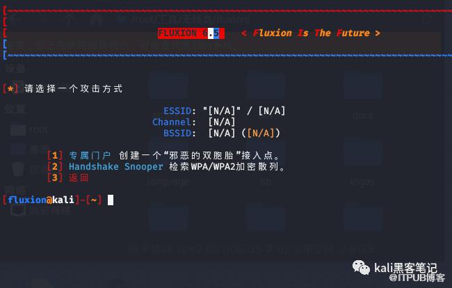 安装完成后,初次会对当前系统进行模块检测。如需手动安装模块,只需要执行apt-get install xxx后跟缺失的模块。这里我们以FLUXION 6.9作为演示