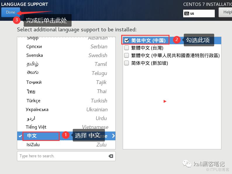 选择中文,勾选简体中文(中国),完成后单击Done或下一步