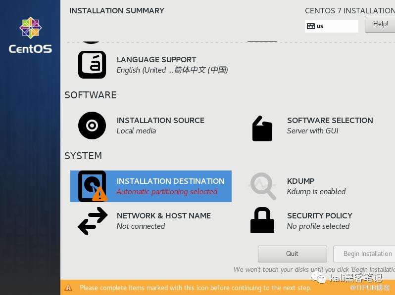 单击INSTALLATION DESTINATION 即安装位置