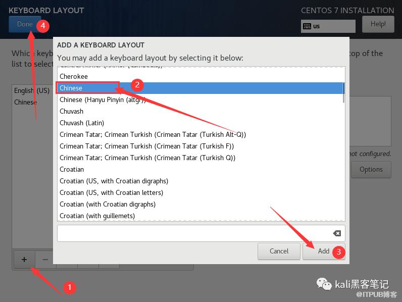 选择KEYBOARD单击左下角+号,选择Chinese,单击Add,完成后单击Done