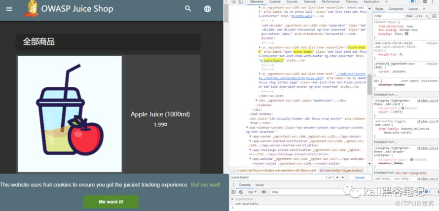 而身为祖传大黑阔的我,打开owasp juice shop竟然一眼懵逼。这是什么鬼?尽然看不懂这个靶场。通过审查元素,我们看到了下面代码
