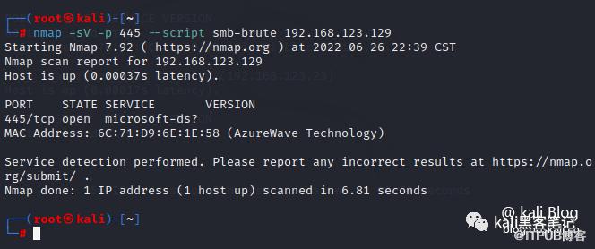 nmap -p 445 --script smb-os-discovery 192.168.123.129