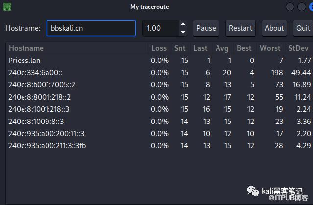 在本指南中,我们了解了如何在 Kali Linux 上使用 traceroute。我们还看到了如何使用 mtr,两者各有千秋,traceroute 以及 mtr 两者都通过帮助我们了解特定设备的网络路径而派上用场。它们还可用于帮助测试您的互联网连接。使用这些工具查找位于 Kali 和目标系统之间的网络连接。
